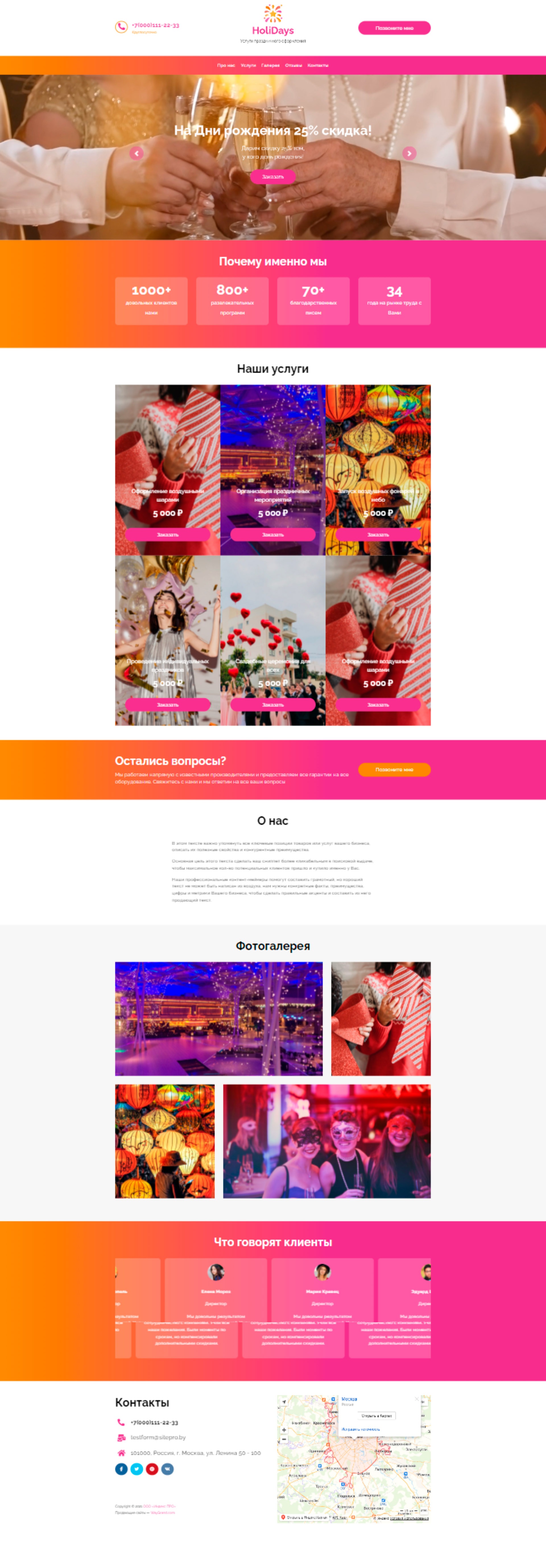 Закажите готовый продающий сайт лендинг #0440207 в Рязани за 1-3 дня «под ключ»: свёрстан, отрисован и готов к рекламе. Тематика шаблона «Услуги праздничного оформления».