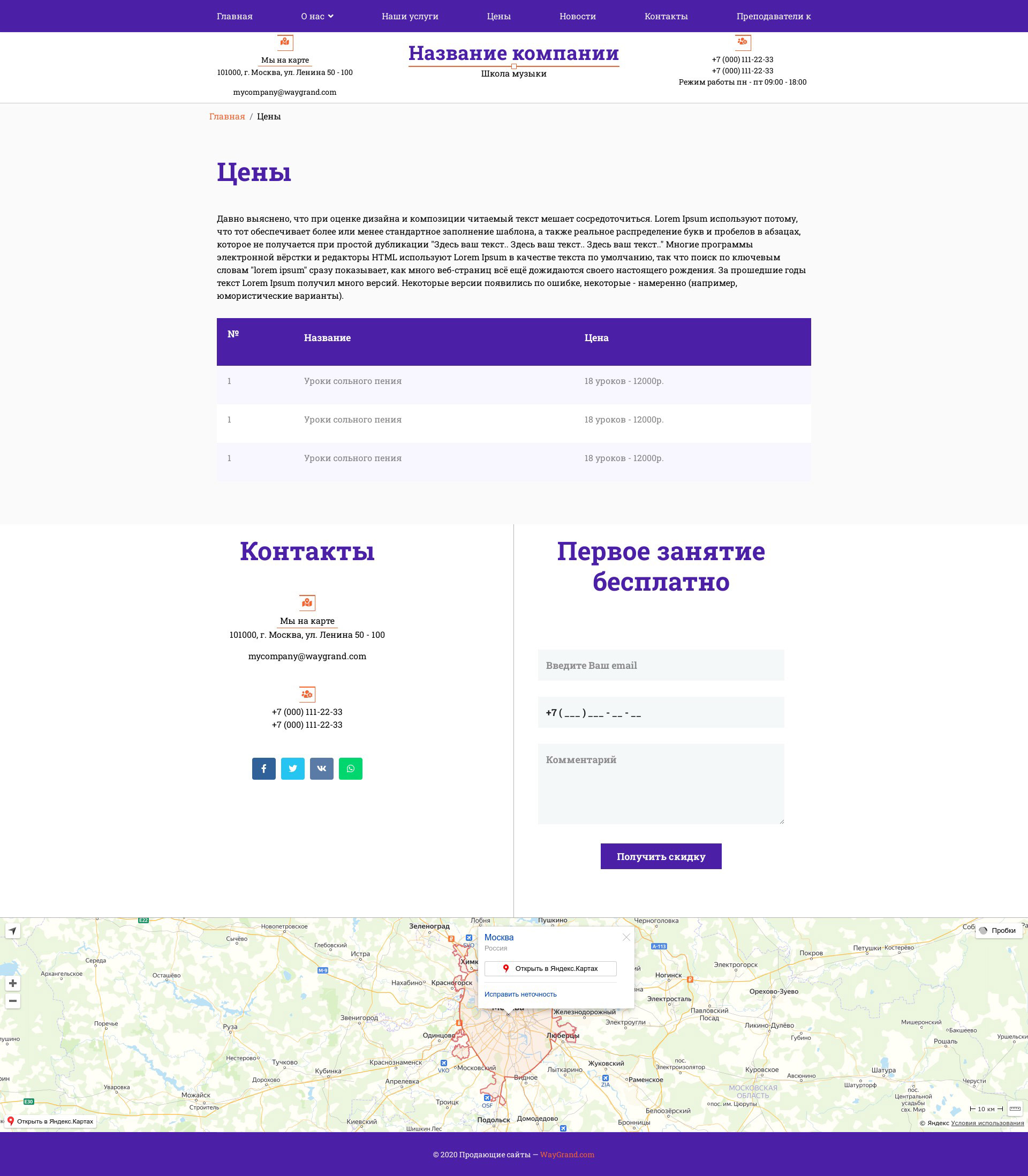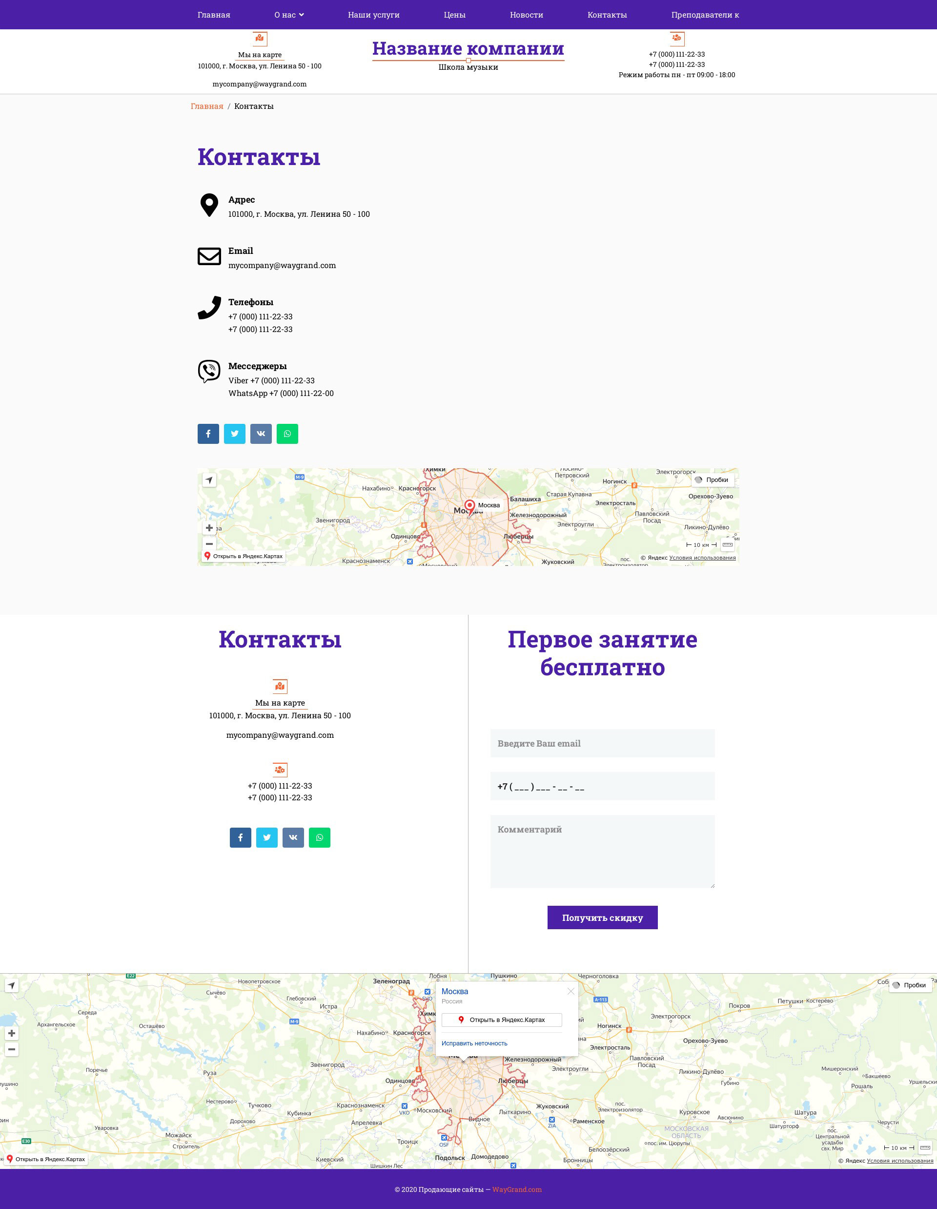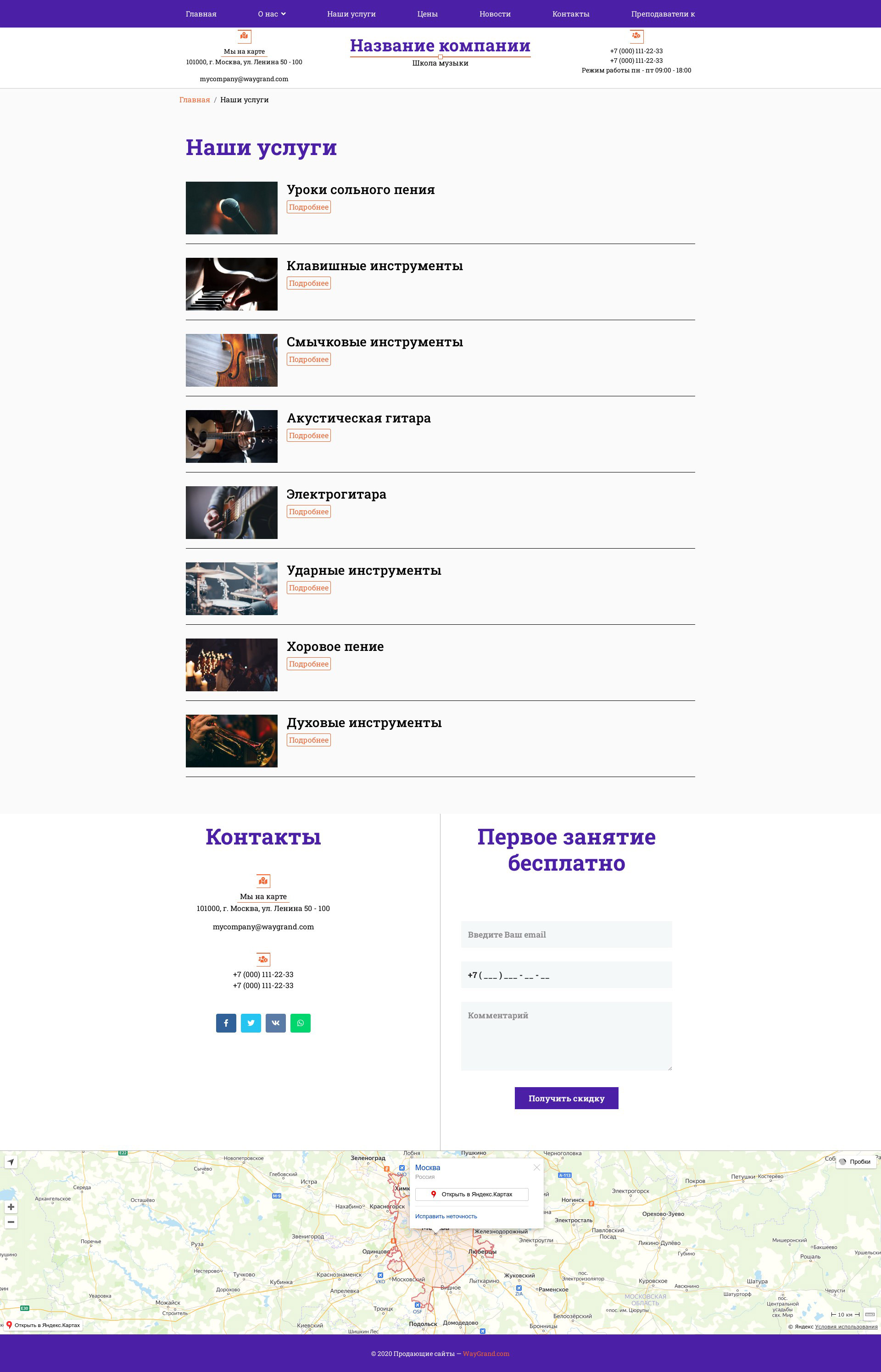Закажите готовый продающий сайт визитка #1431301 в Рязани за 5-7 дня «под ключ»: свёрстан, отрисован и готов к рекламе. Тематика шаблона «Школа музыки».