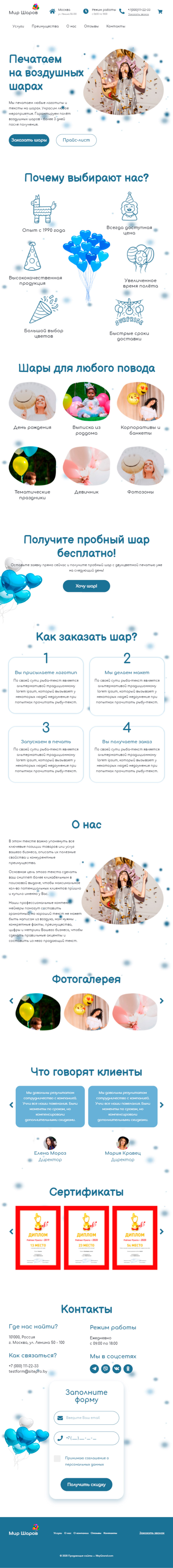 Закажите готовый продающий сайт лендинг #1826202 в Рязани за 1-3 дня «под ключ»: свёрстан, отрисован и готов к рекламе. Тематика шаблона «Печать на воздушных шарах».