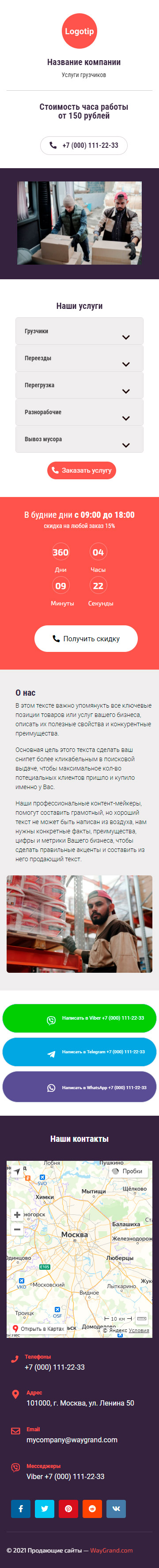 Закажите готовый продающий сайт визитка #2562101 в Рязани за 5-7 дня «под ключ»: свёрстан, отрисован и готов к рекламе. Тематика шаблона «Услуги грузчиков».