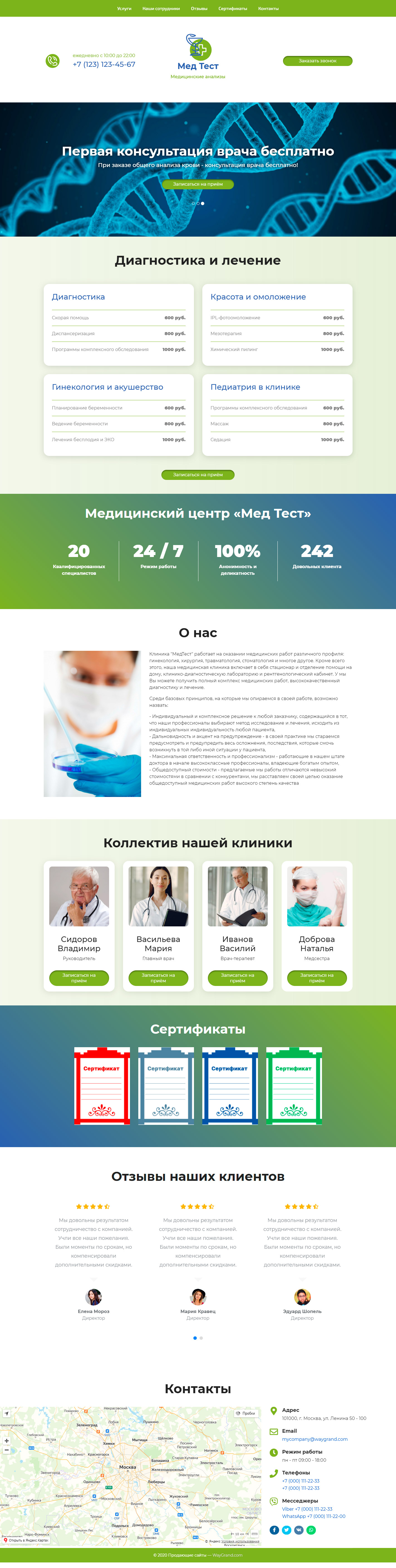 Закажите готовый продающий сайт лендинг #1025201 в Рязани за 1-3 дня «под ключ»: свёрстан, отрисован и готов к рекламе. Тематика шаблона «Медицинские анализы».