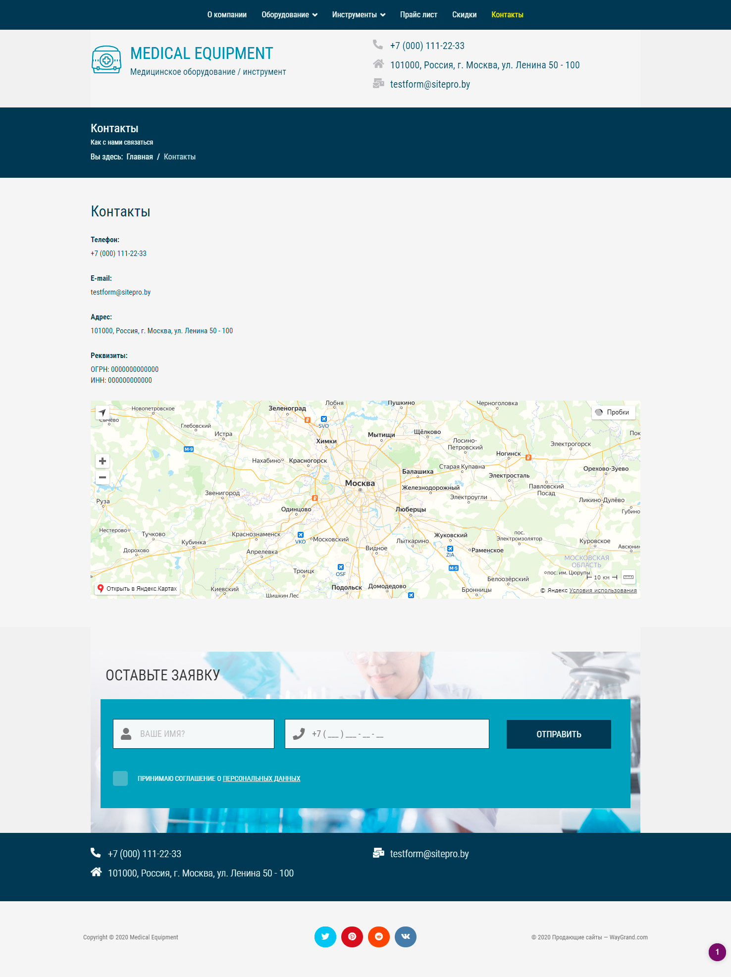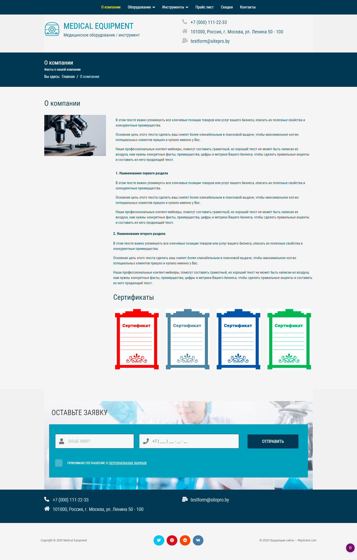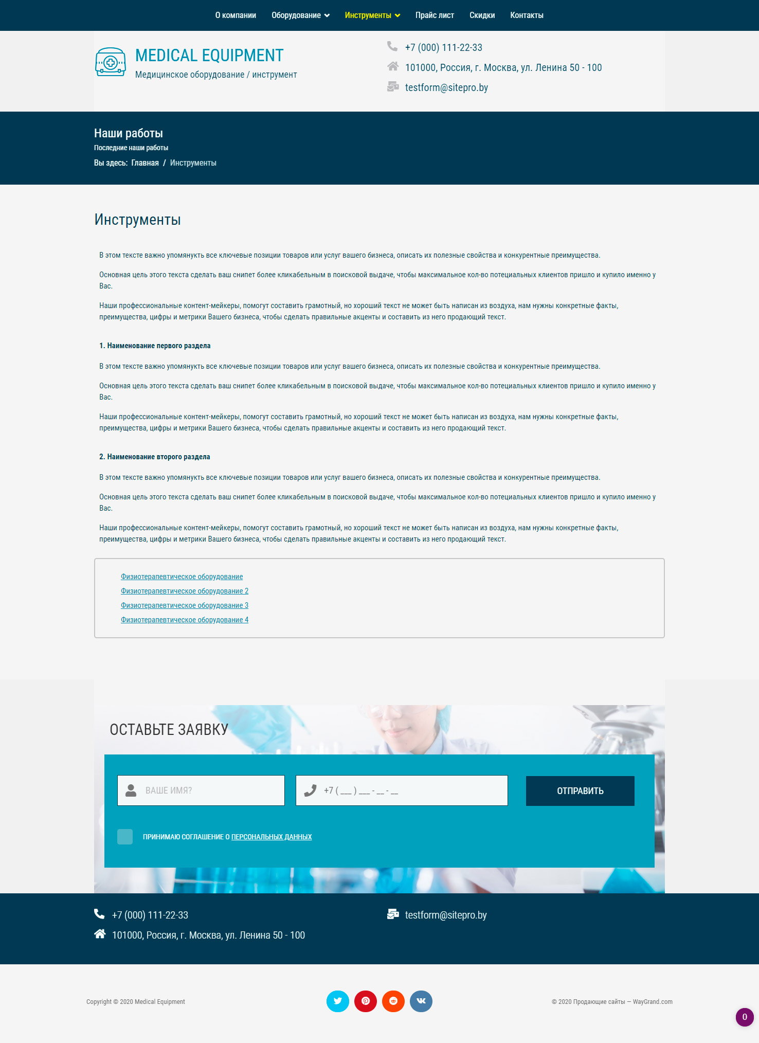 Закажите готовый продающий сайт визитка #1029301 в Рязани за 5-7 дня «под ключ»: свёрстан, отрисован и готов к рекламе. Тематика шаблона «Медицинское оборудование / инструмент».