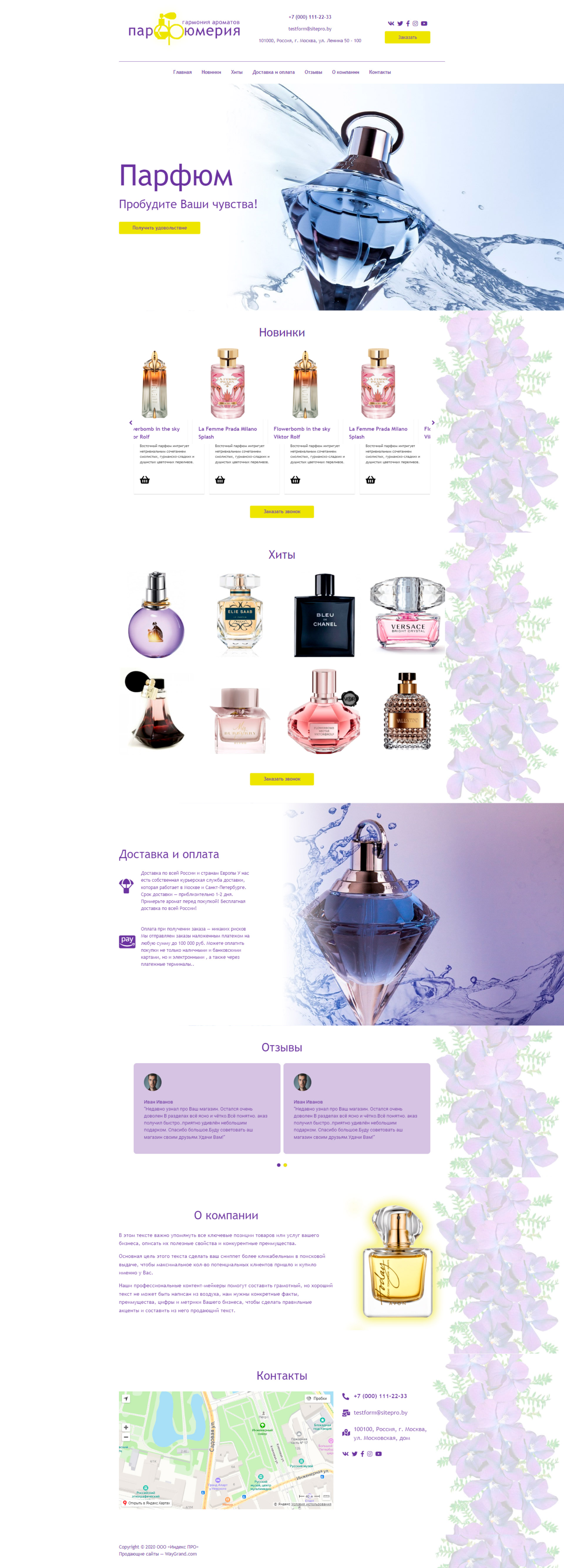 Закажите готовый продающий сайт лендинг #1030202 в Рязани за 1-3 дня «под ключ»: свёрстан, отрисован и готов к рекламе. Тематика шаблона «Парфюмерия».
