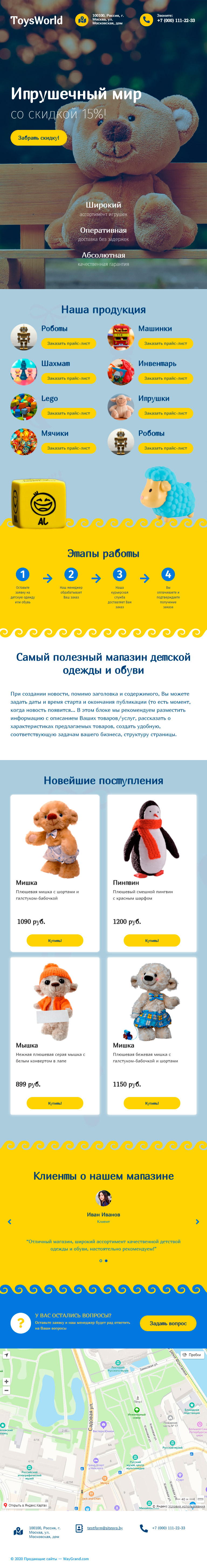 Закажите готовый продающий сайт лендинг #1509201 в Рязани за 1-3 дня «под ключ»: свёрстан, отрисован и готов к рекламе. Тематика шаблона «Игрушечный мир».