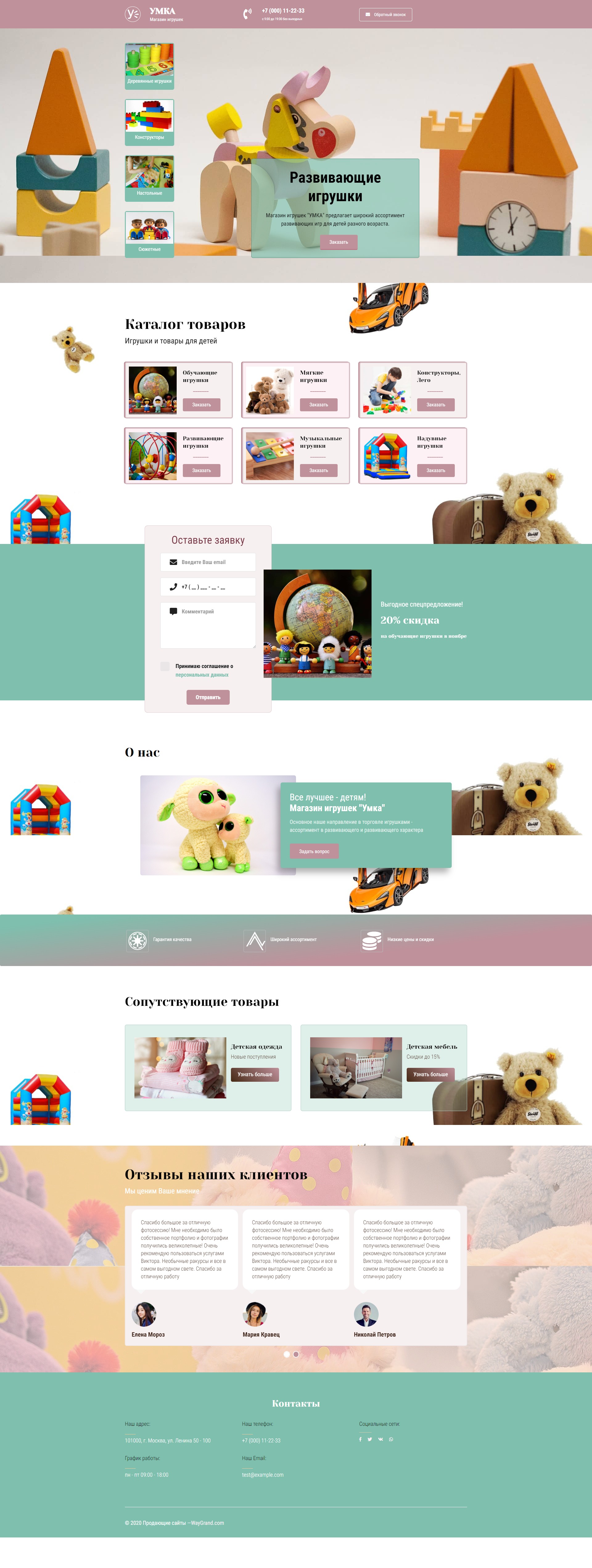 Закажите готовый продающий сайт лендинг #2442201 в Рязани за 1-3 дня «под ключ»: свёрстан, отрисован и готов к рекламе. Тематика шаблона «Магазин игрушек».