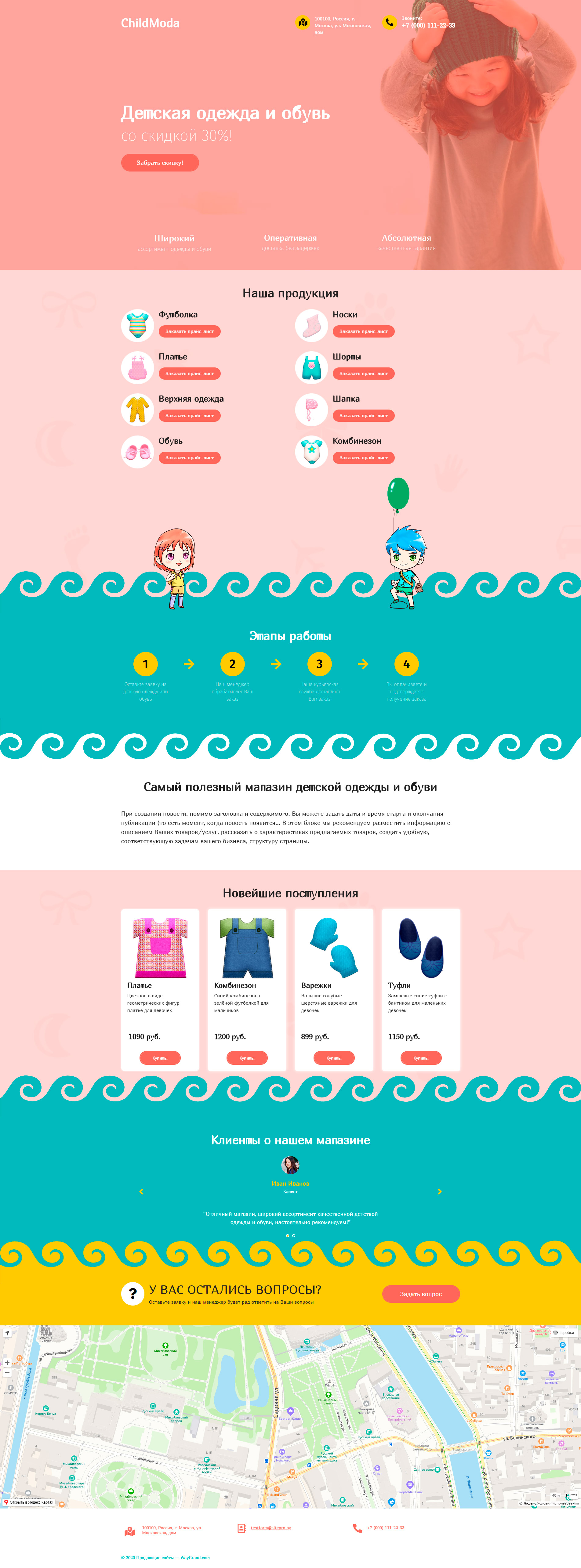 Закажите готовый продающий сайт лендинг #1506201 в Рязани за 1-3 дня «под ключ»: свёрстан, отрисован и готов к рекламе. Тематика шаблона «Детская одежда и обувь».