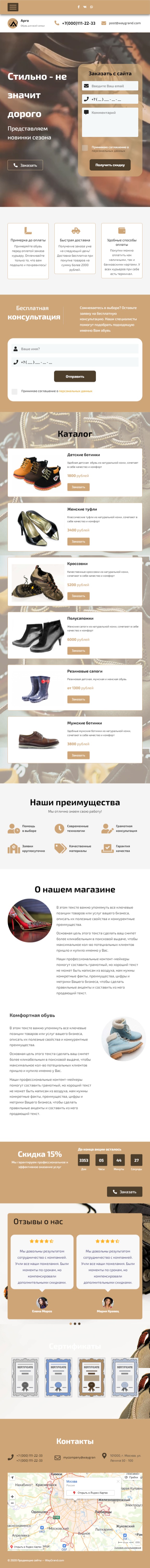 Закажите готовый продающий сайт лендинг #1516201 в Рязани за 1-3 дня «под ключ»: свёрстан, отрисован и готов к рекламе. Тематика шаблона «Обувь, стильная».