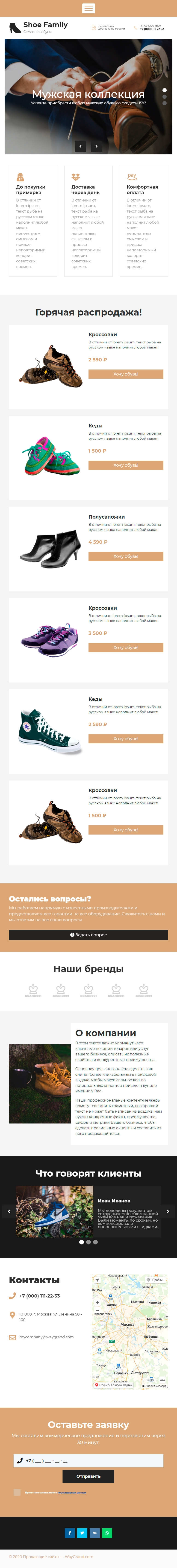 Закажите готовый продающий сайт лендинг #1517201 в Рязани за 1-3 дня «под ключ»: свёрстан, отрисован и готов к рекламе. Тематика шаблона «Обувь».