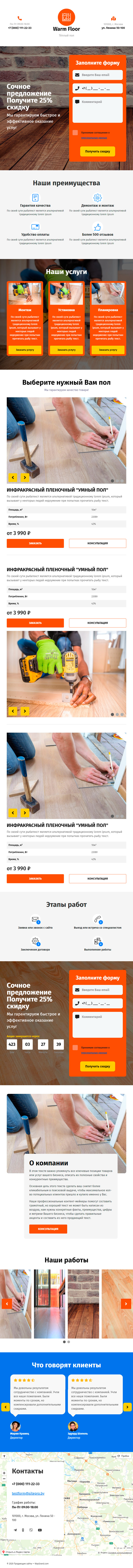 Закажите готовый продающий сайт лендинг #2153201 в Рязани за 1-3 дня «под ключ»: свёрстан, отрисован и готов к рекламе. Тематика шаблона «Монтаж тёплого пола».