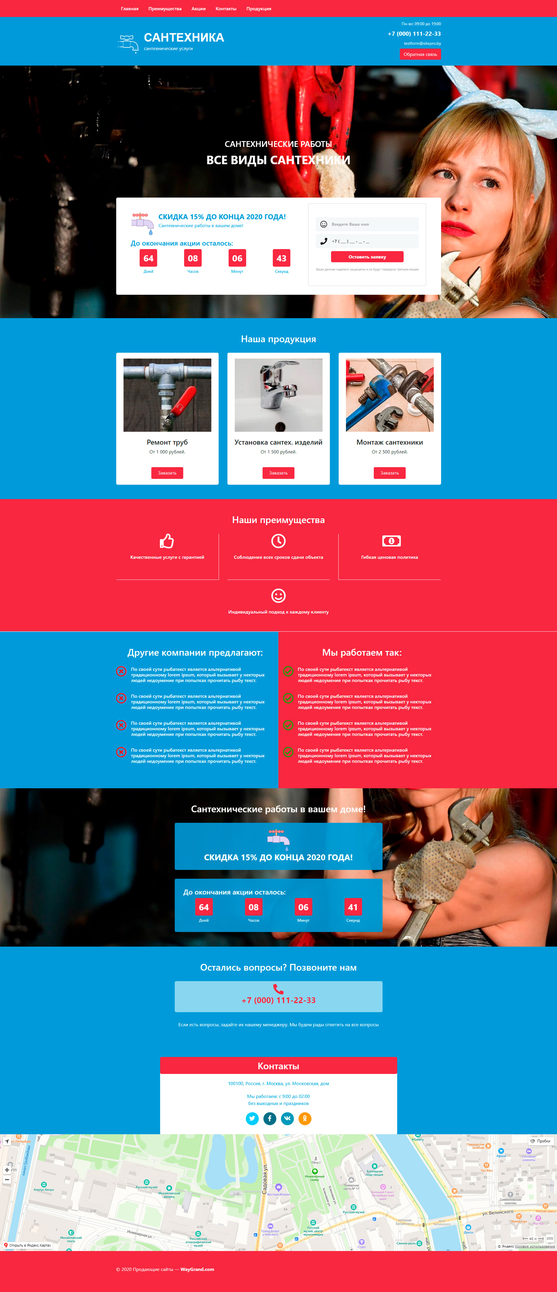 Закажите готовый продающий сайт лендинг #2158202 в Рязани за 1-3 дня «под ключ»: свёрстан, отрисован и готов к рекламе. Тематика шаблона «Сантехника».