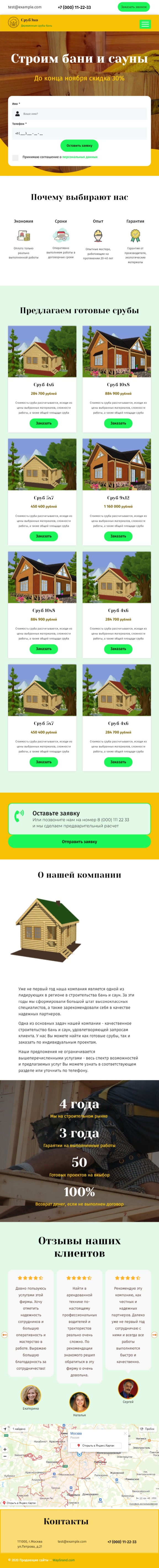 Закажите готовый продающий сайт лендинг #2172202 в Рязани за 1-3 дня «под ключ»: свёрстан, отрисован и готов к рекламе. Тематика шаблона «Строительство бань и саун».