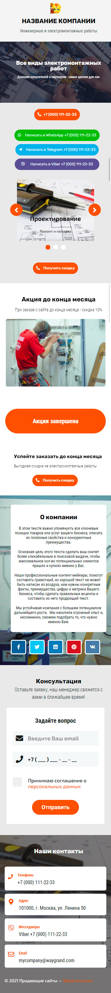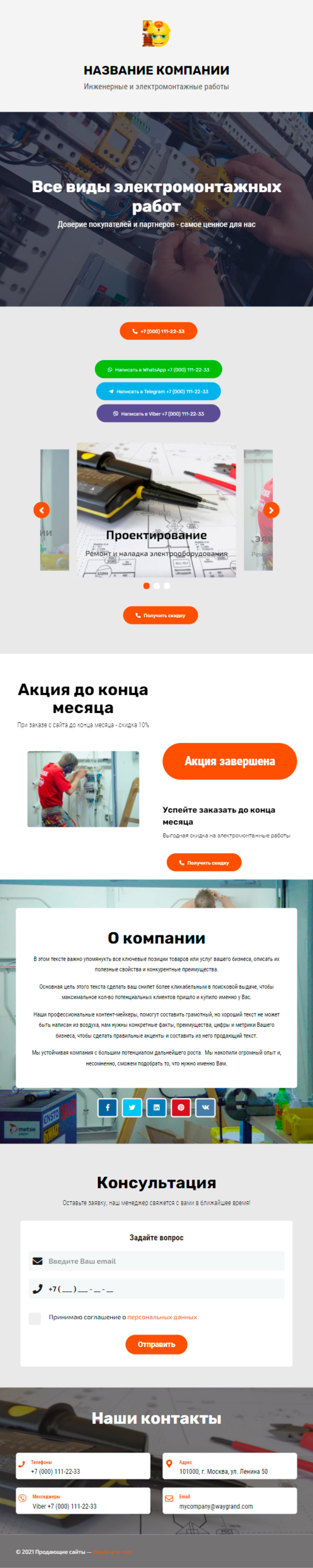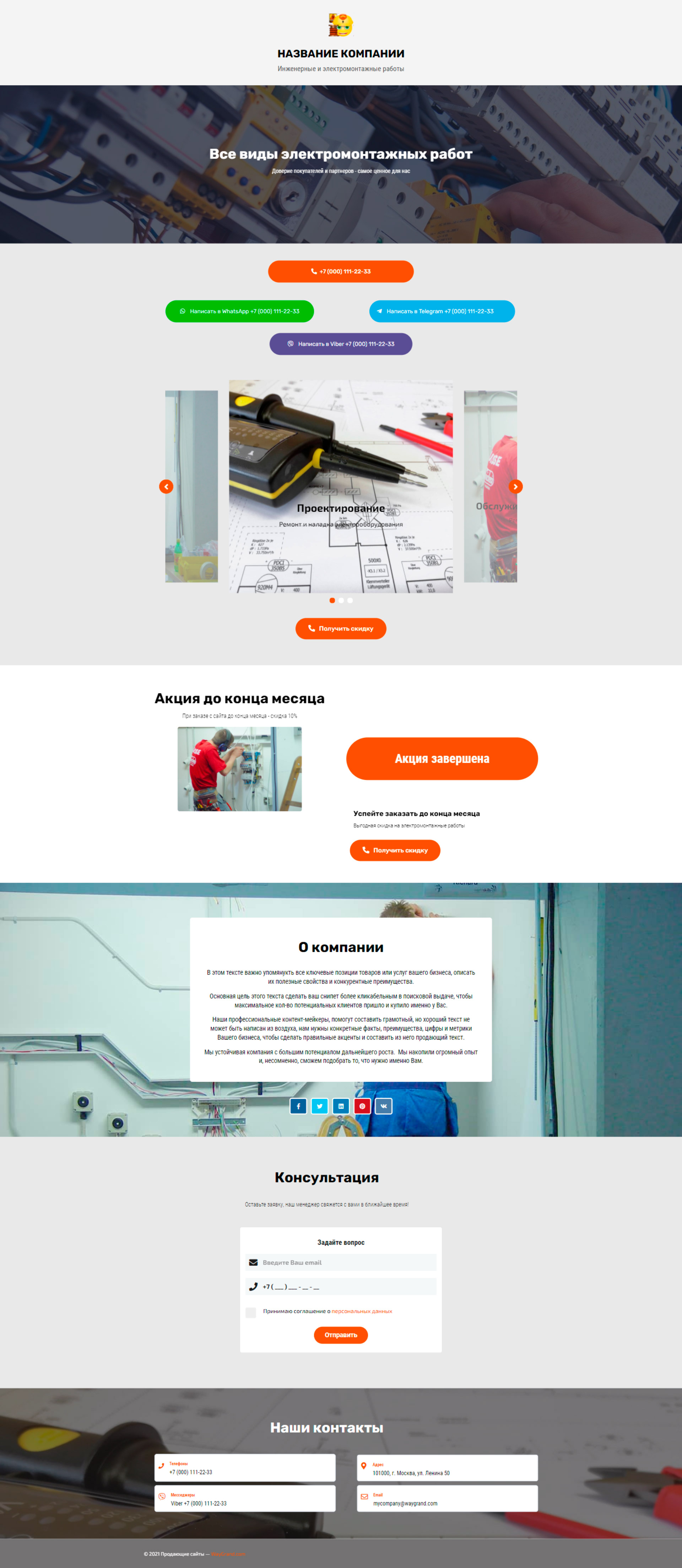Закажите готовый продающий сайт визитка #2189101 в Рязани за 5-7 дня «под ключ»: свёрстан, отрисован и готов к рекламе. Тематика шаблона «Инженерные и электромонтажные работы».