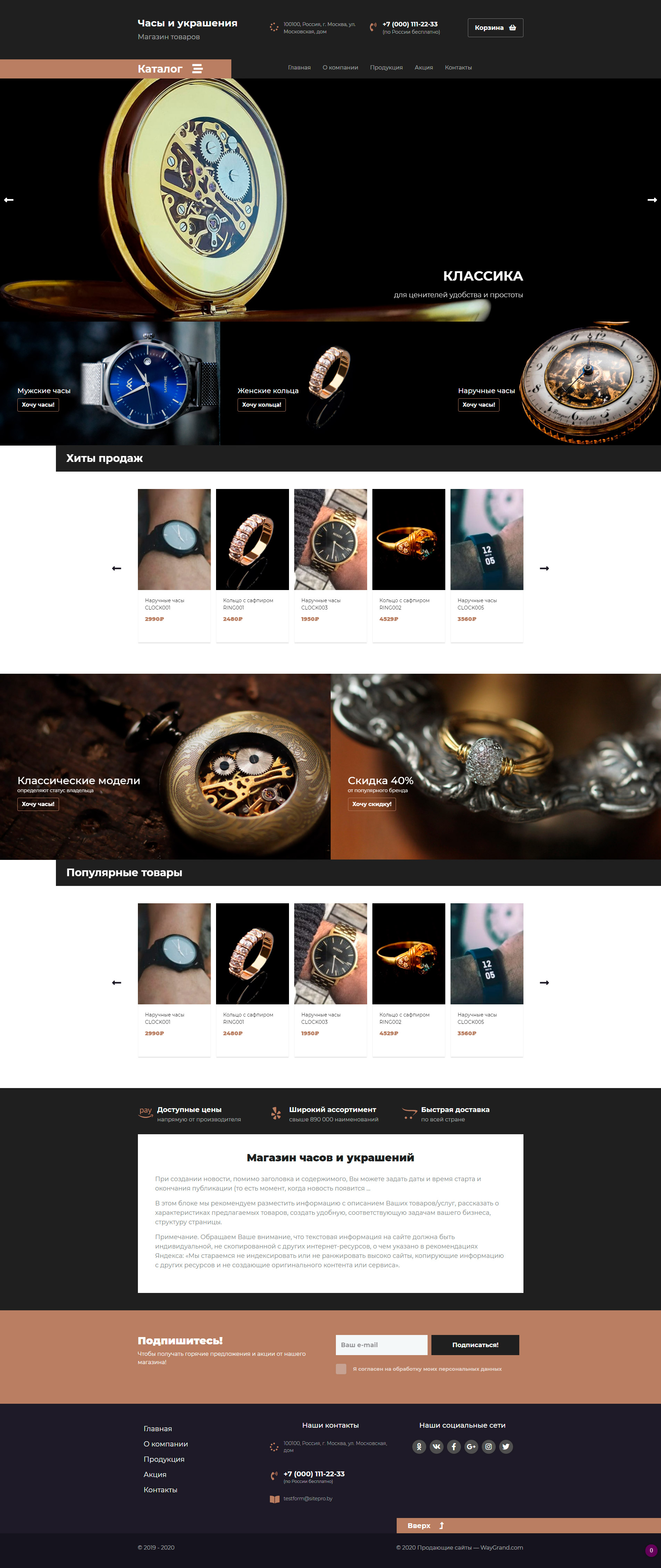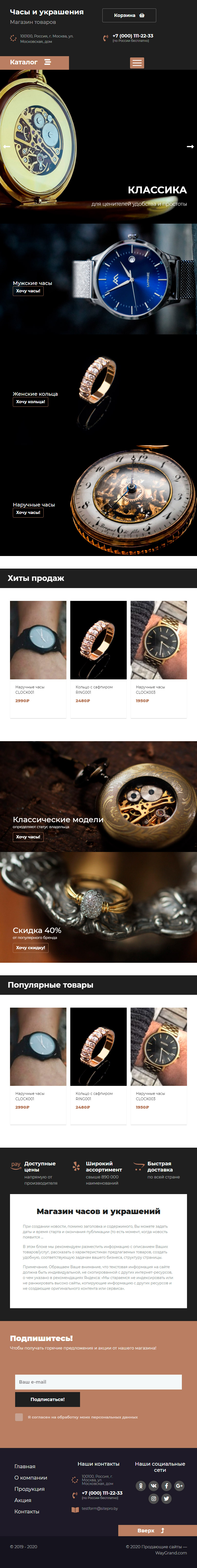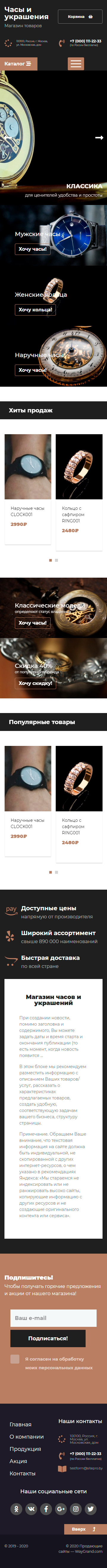 Закажите готовый продающий сайт лендинг #2437201 в Рязани за 1-3 дня «под ключ»: свёрстан, отрисован и готов к рекламе. Тематика шаблона «Часы и украшения».