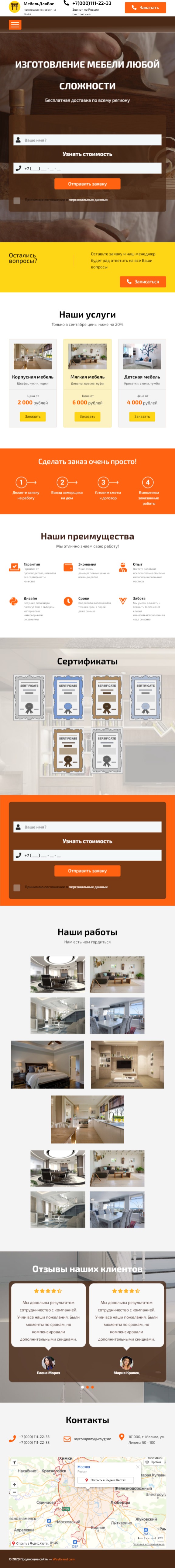 Закажите готовый продающий сайт лендинг #0903201 в Рязани за 1-3 дня «под ключ»: свёрстан, отрисован и готов к рекламе. Тематика шаблона «Изготовление мебели».