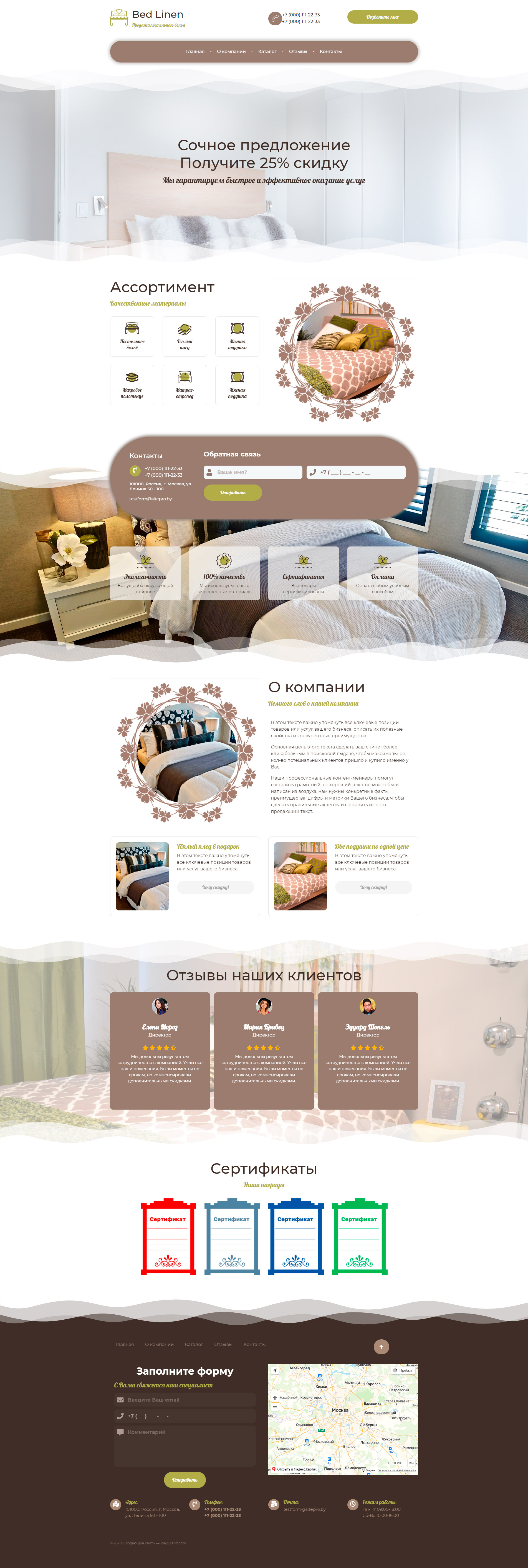 Закажите готовый продающий сайт лендинг #2210202 в Рязани за 1-3 дня «под ключ»: свёрстан, отрисован и готов к рекламе. Тематика шаблона «Постельное белье».