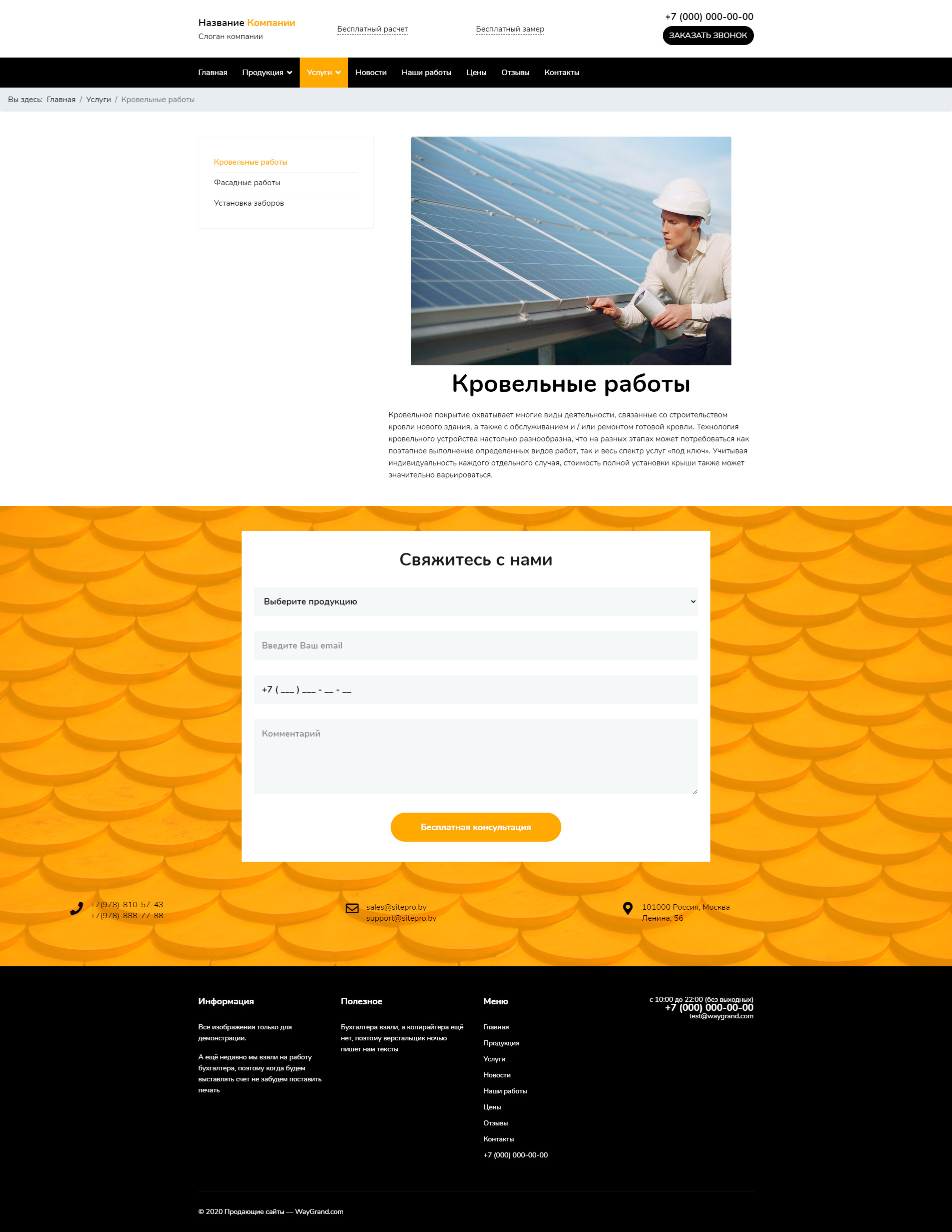 Закажите готовый продающий сайт визитка #2132301 в Рязани за 5-7 дня «под ключ»: свёрстан, отрисован и готов к рекламе. Тематика шаблона «Заборы, кровля, фасады».