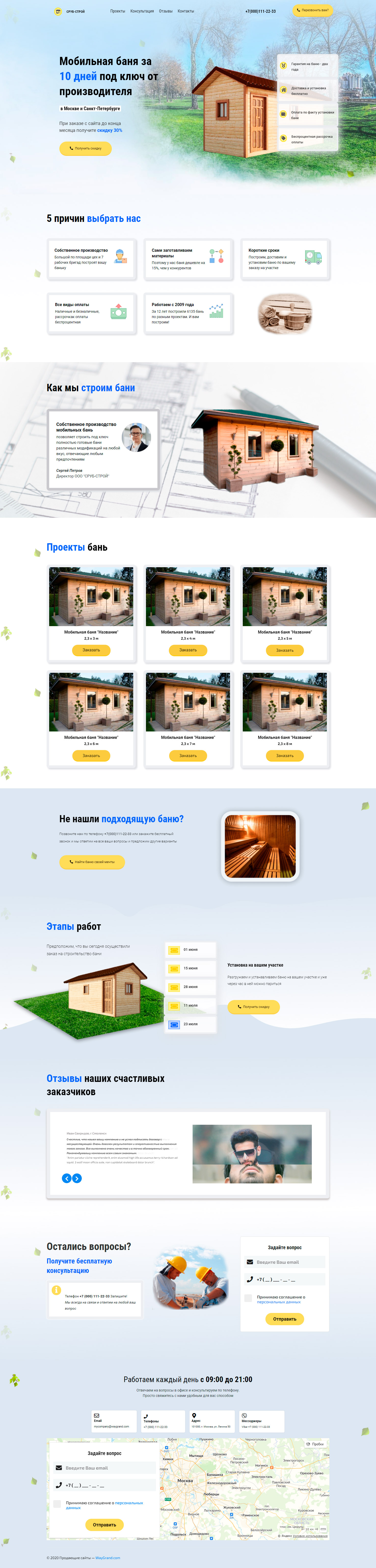Закажите готовый продающий сайт лендинг #2172203 в Рязани за 1-3 дня «под ключ»: свёрстан, отрисован и готов к рекламе. Тематика шаблона «Мобильная баня».
