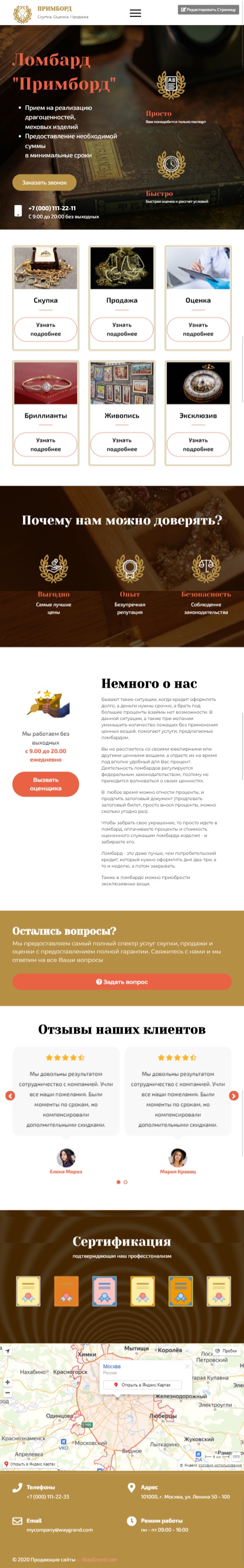 Закажите готовый продающий сайт лендинг #2408201 в Рязани за 1-3 дня «под ключ»: свёрстан, отрисован и готов к рекламе. Тематика шаблона «Ломбард».