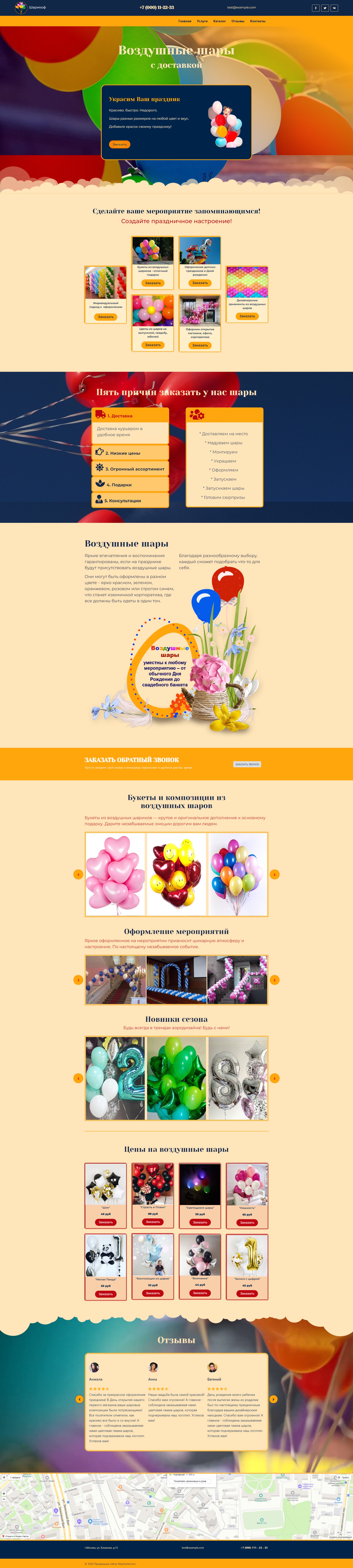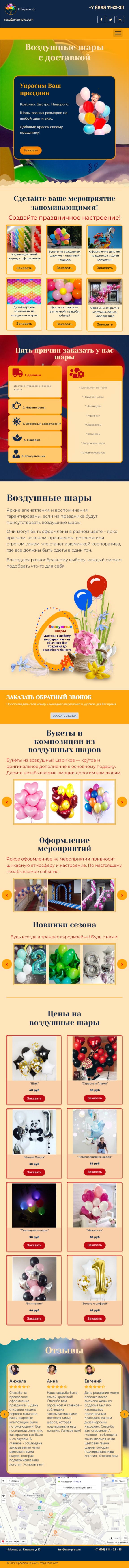 Закажите готовый продающий сайт лендинг #2427202 в Рязани за 1-3 дня «под ключ»: свёрстан, отрисован и готов к рекламе. Тематика шаблона «Воздушные шары».