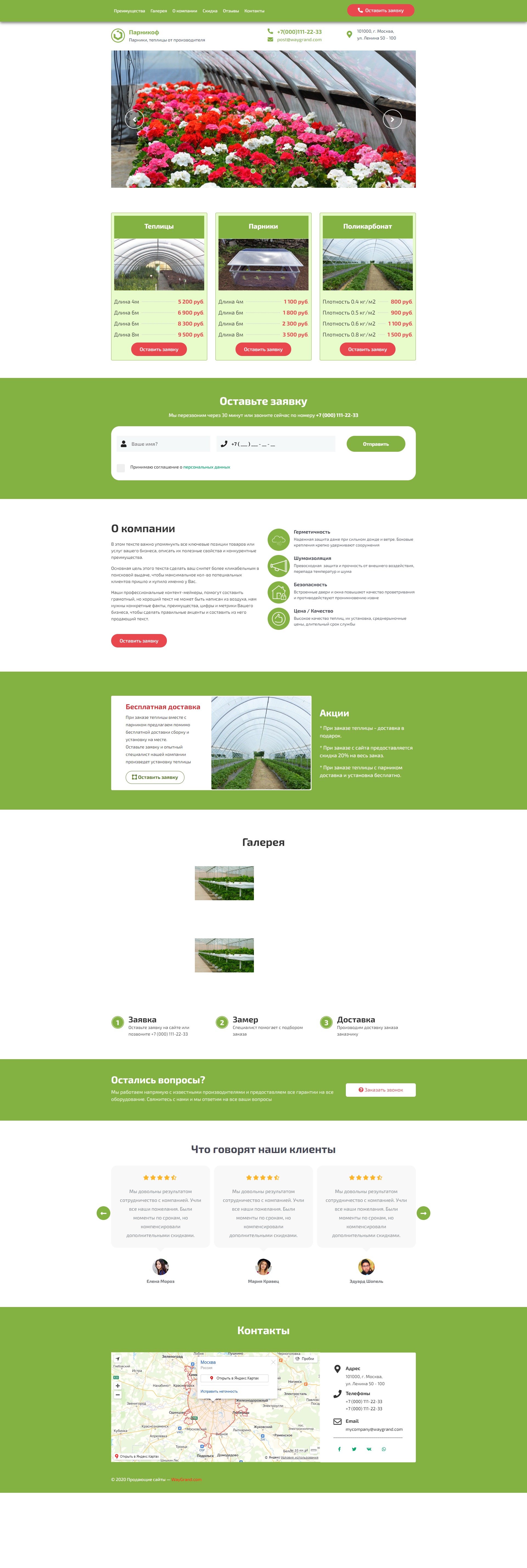 Закажите готовый продающий сайт лендинг #2624202 в Рязани за 1-3 дня «под ключ»: свёрстан, отрисован и готов к рекламе. Тематика шаблона «Парники и теплицы».