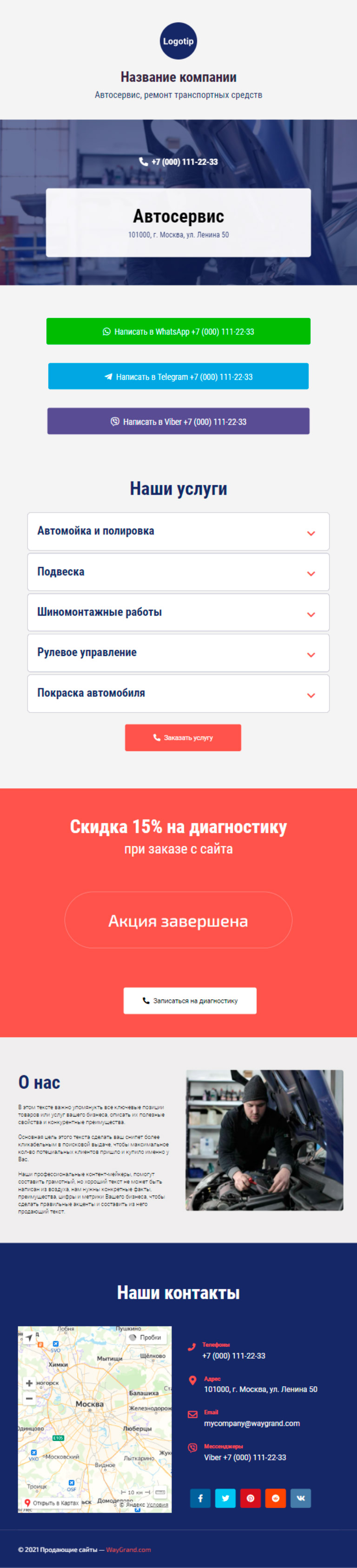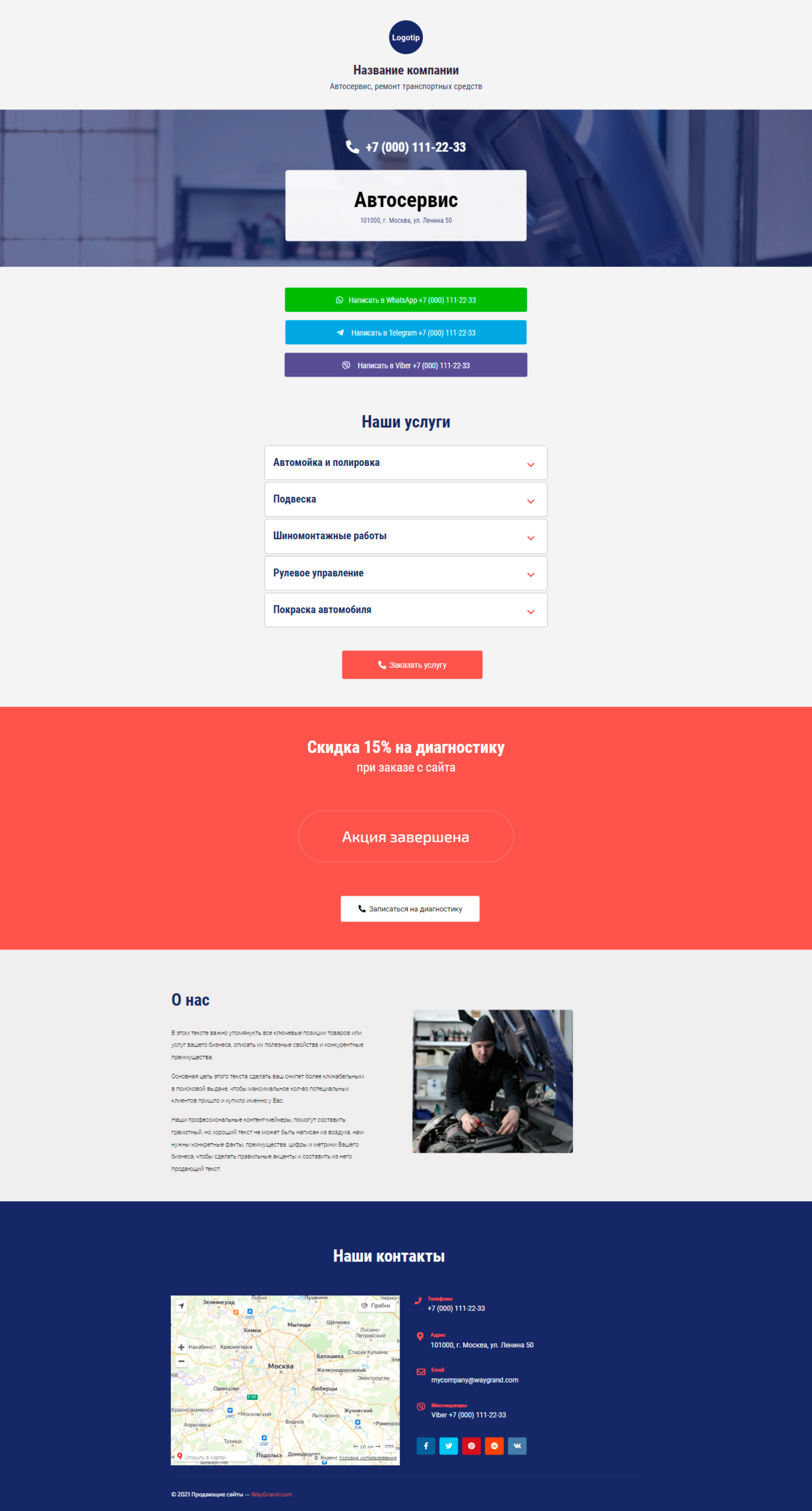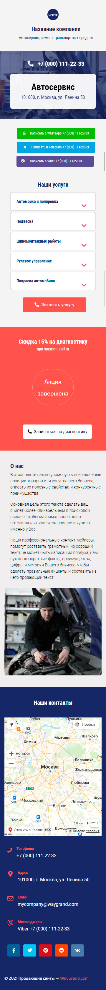 Закажите готовый продающий сайт визитка #0210101 в Рязани за 5-7 дня «под ключ»: свёрстан, отрисован и готов к рекламе. Тематика шаблона «Автосервис, ремонт транспортных средств».