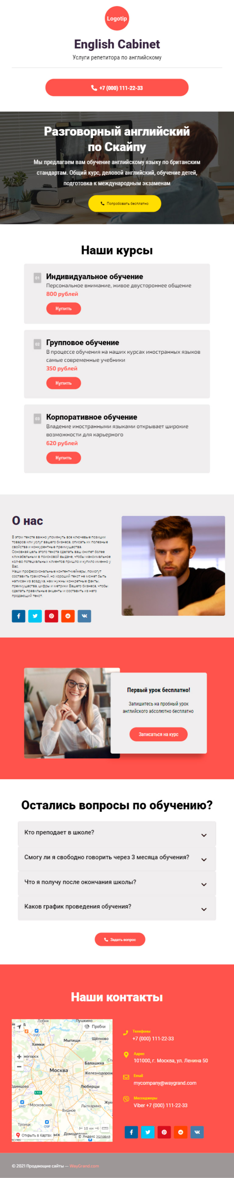 Закажите готовый продающий сайт визитка #1463101 в Рязани за 5-7 дня «под ключ»: свёрстан, отрисован и готов к рекламе. Тематика шаблона «Услуги репетитора по английскому».