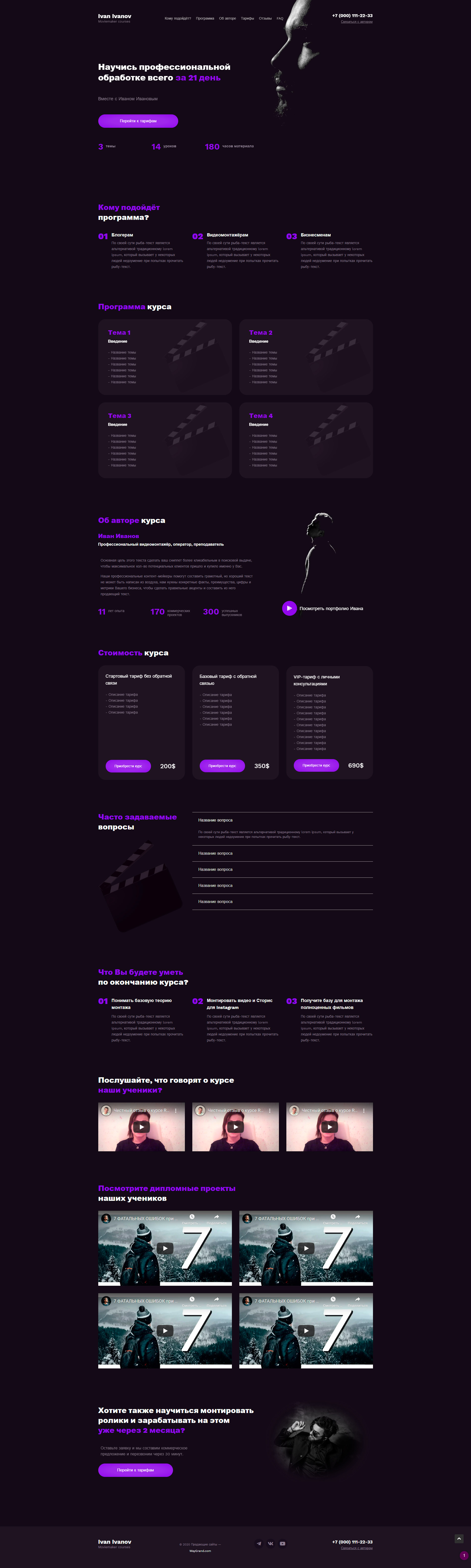 Закажите готовый продающий сайт лендинг #1467204 в Рязани за 1-3 дня «под ключ»: свёрстан, отрисован и готов к рекламе. Тематика шаблона «Для курса видеомонтажа».