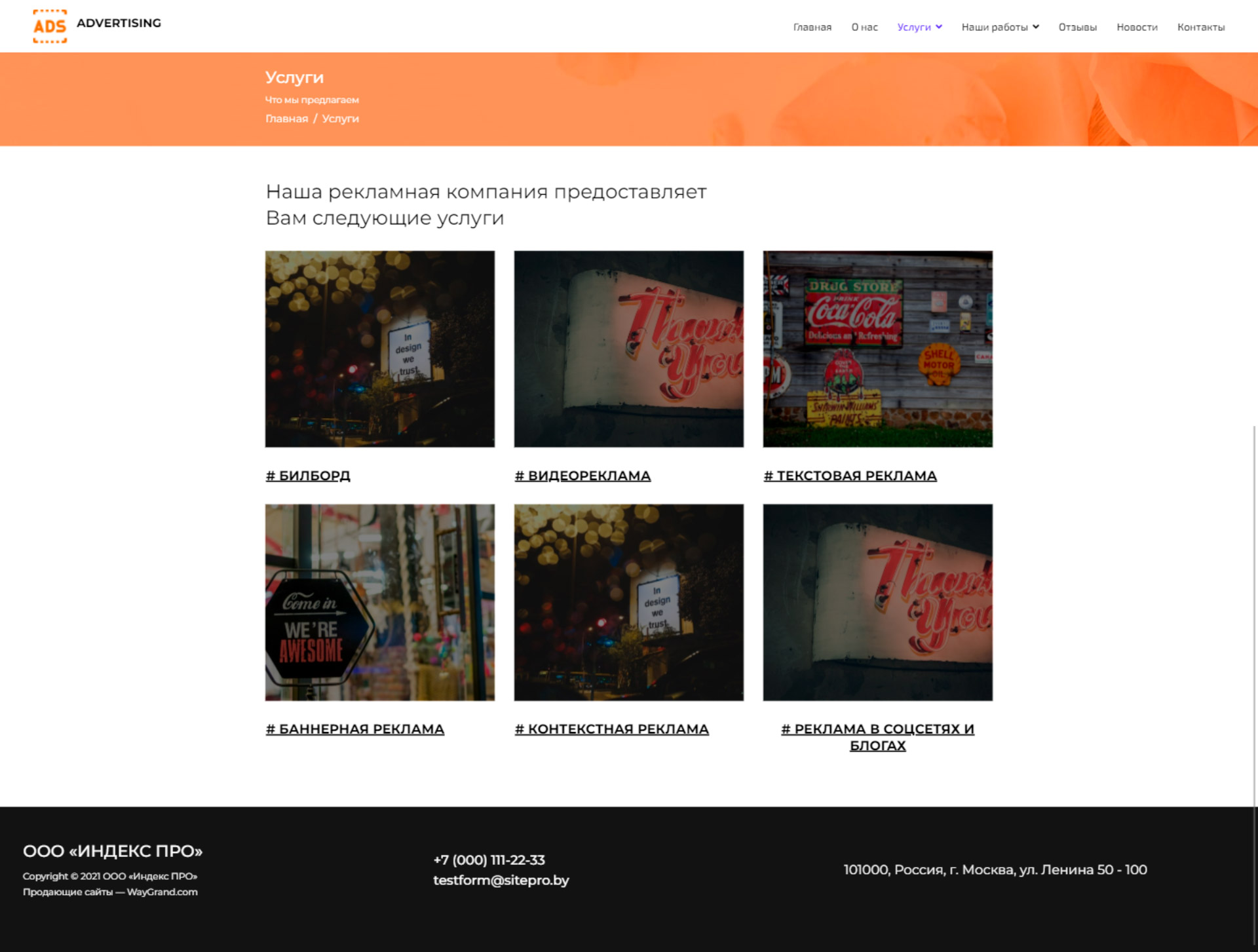 Закажите готовый продающий сайт визитка #1836301 в Рязани за 5-7 дня «под ключ»: свёрстан, отрисован и готов к рекламе. Тематика шаблона «Рекламное агентство».