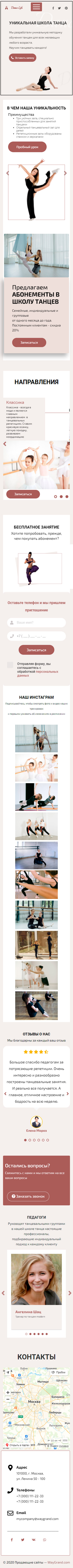 Закажите готовый продающий сайт лендинг #1923202 в Рязани за 1-3 дня «под ключ»: свёрстан, отрисован и готов к рекламе. Тематика шаблона «Школа танцев».