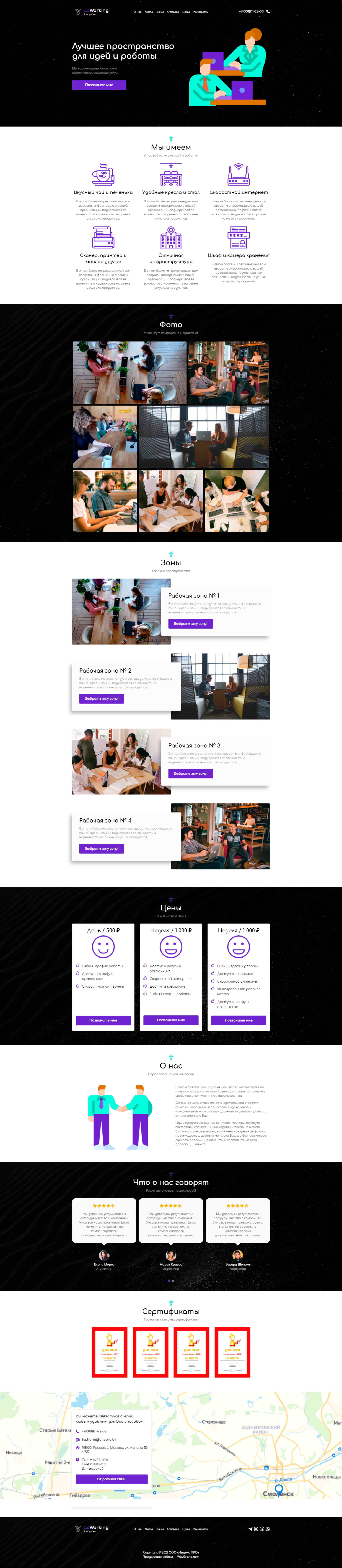 Закажите готовый продающий сайт лендинг #2130201 в Рязани за 1-3 дня «под ключ»: свёрстан, отрисован и готов к рекламе. Тематика шаблона «Коворкинг».