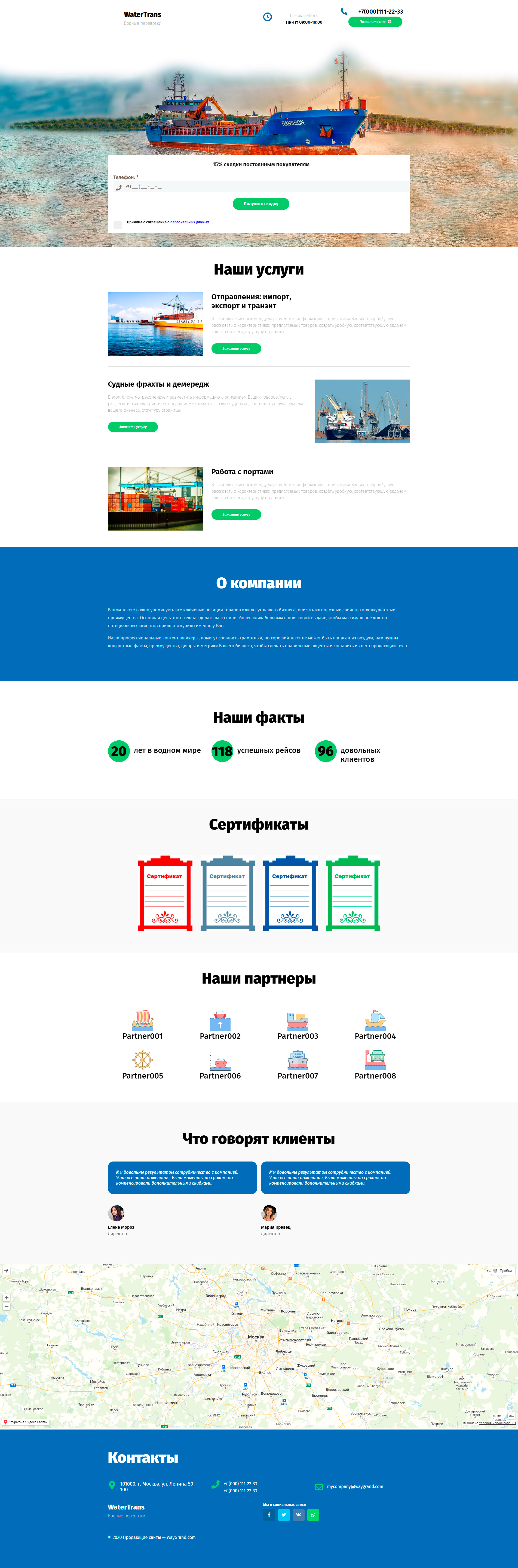 Закажите готовый продающий сайт лендинг #1908201 в Рязани за 1-3 дня «под ключ»: свёрстан, отрисован и готов к рекламе. Тематика шаблона «Морские перевозки».
