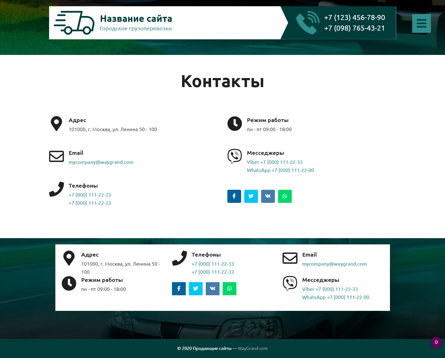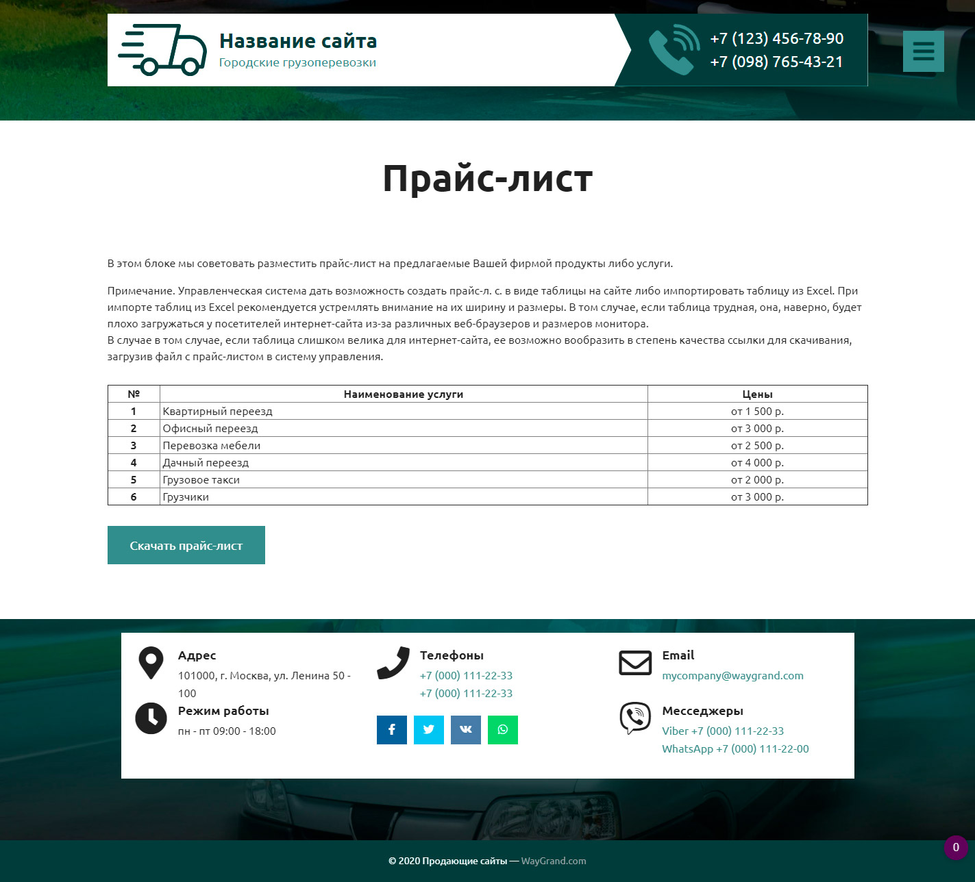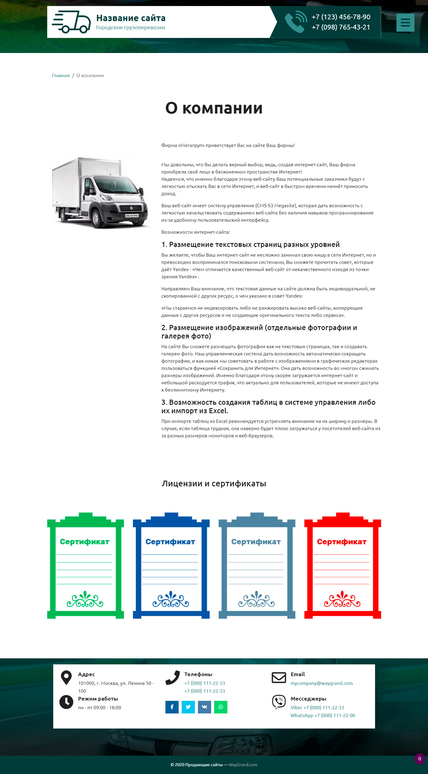 Закажите готовый продающий сайт визитка #2515302 в Рязани за 5-7 дня «под ключ» по доступным ценам на WayGrand: свёрстан, отрисован и готов к рекламе. Тематика шаблона «Городские грузоперевозки».
