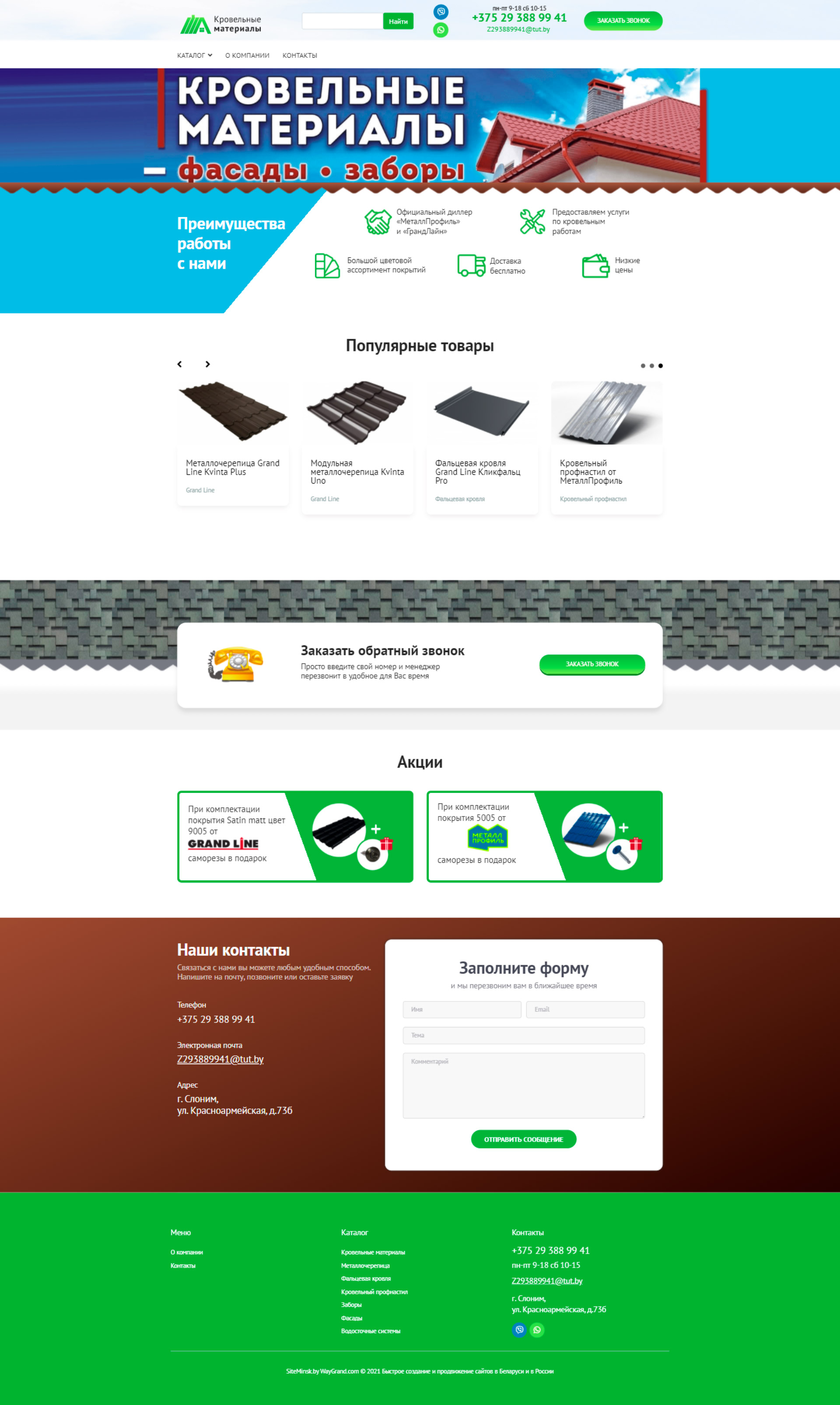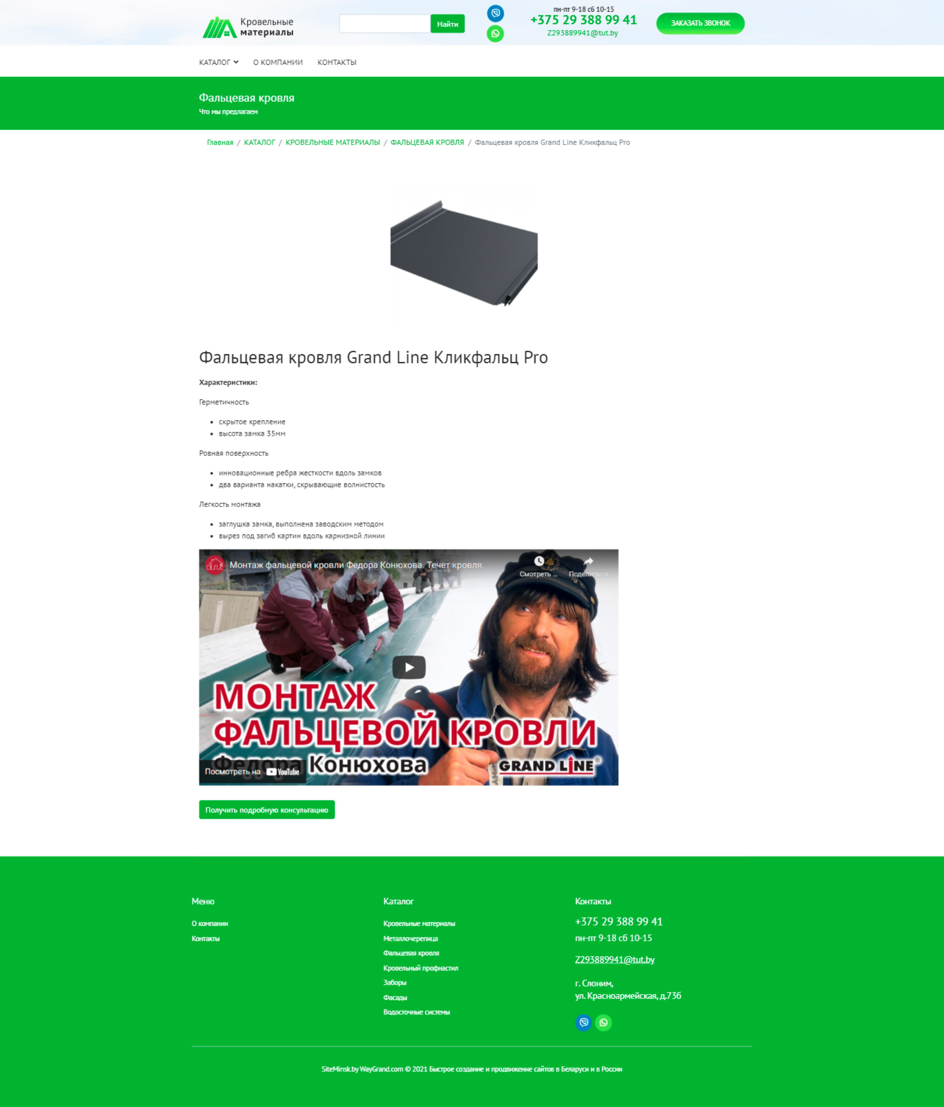 Закажите готовый продающий сайт визитка #324 в Рязани «под ключ» на waygrand по выгодной цене: свёрстан, отрисован и готов к рекламе. Тематика шаблона «Кровельные материалы».