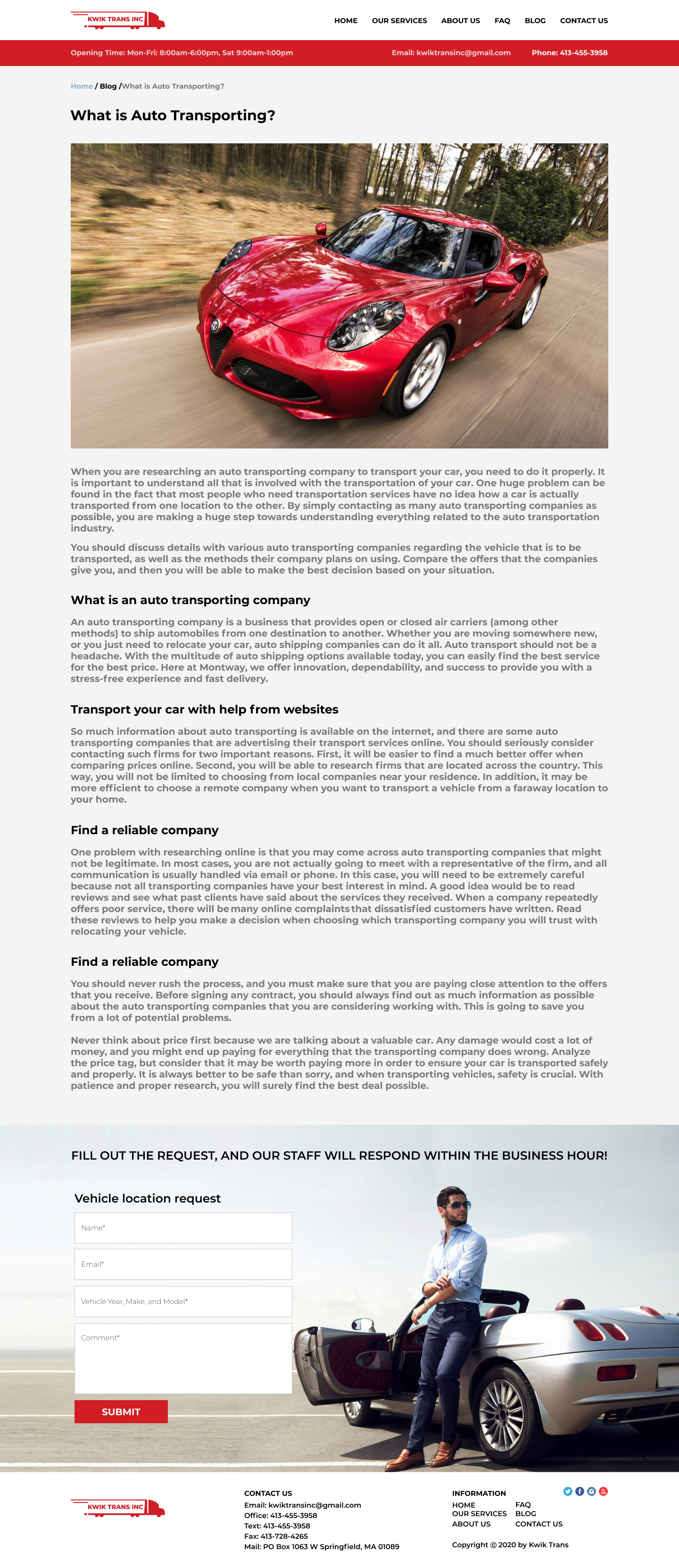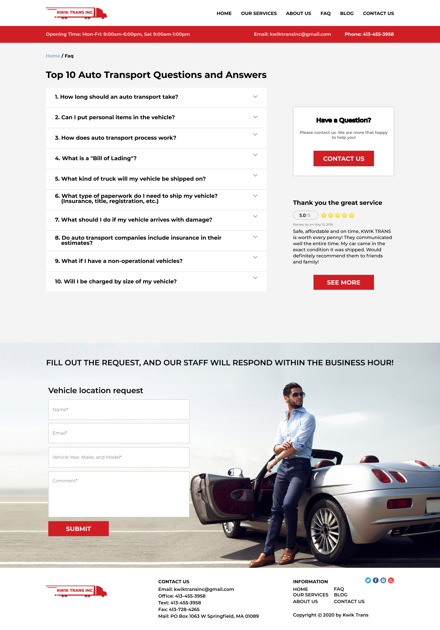 Закажите готовый продающий сайт визитка #223 в Рязани за 5-7 дня «под ключ»: свёрстан, отрисован и готов к рекламе. Тематика шаблона «Safe & Reliable National Auto Transport».
